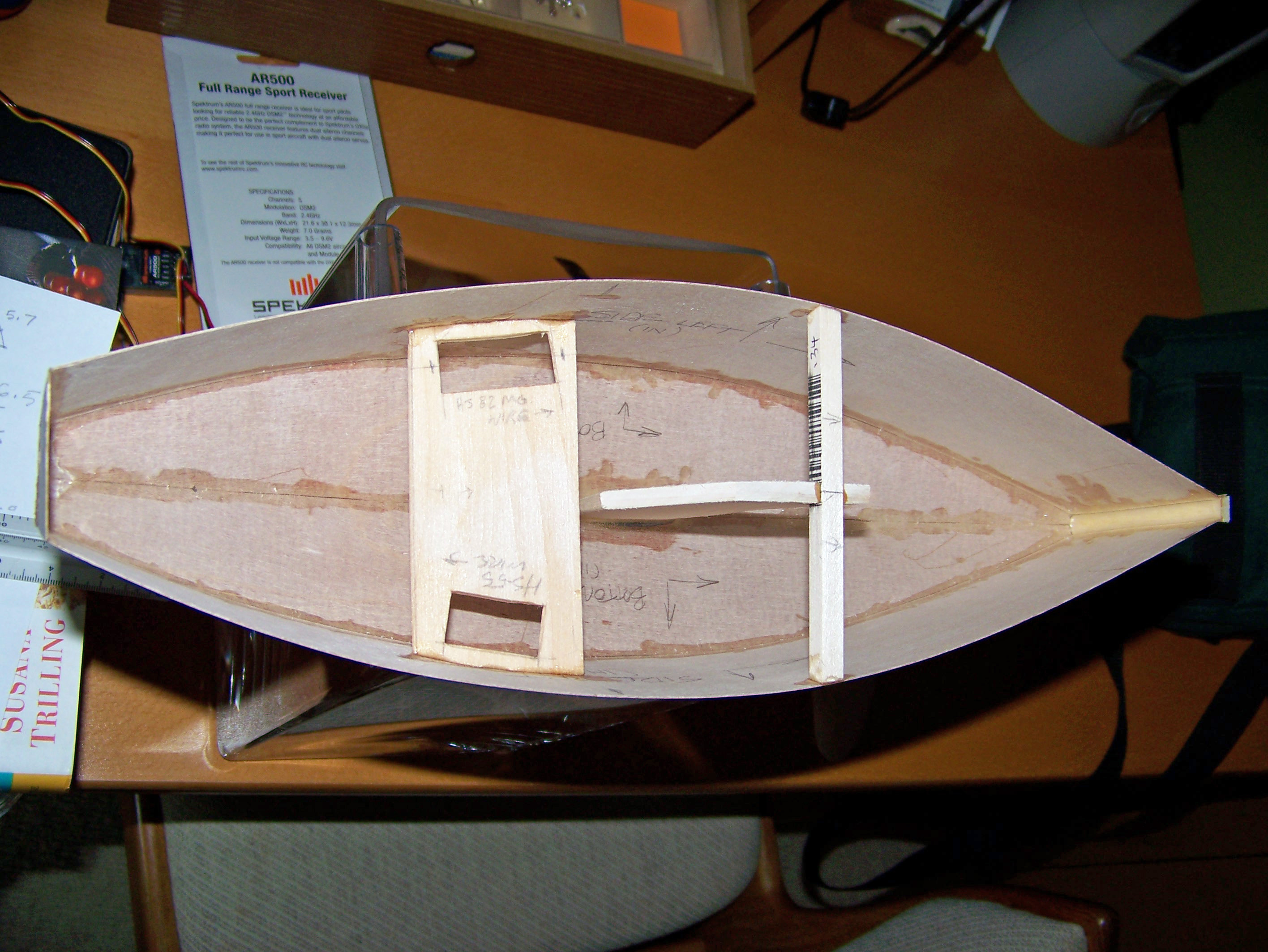 Razor 3 23 Thursday Jun 2011 Original size at 2832 × 2128 ≈ Comments Off on Glued Inside All interior seams epoxied. Also, keel fin (3/16” basswood) and supporting thwart (1/4” basswood) plus servo tray epoxied in. Like Loading...